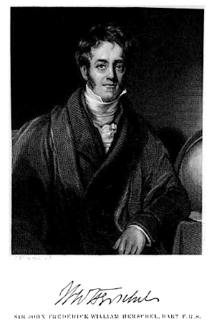 Sir John Frederick William Herschel, 1st Baronet KH (March 7, 1792 – May 11, 1871) was an English mathematician, astronomer, chemist, and experimental photographer/inventor, and the son of astronomer William Herschel. He published several star catalogs based on his own observations, and contributed to the development of photography when it first emerged in 1839. Herschel believed that the study of nature was an avenue to the understanding of God's creation, and was supportive of the design theories of Charles Babbage.