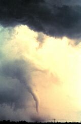In 1964, the remainder of the NSSP moved to Norman, where it merged with WRL and was renamed the National Severe Storms Laboratory (NSSL). Dr. Edwin Kessler became the first director.[3] In 1969, NSSL obtained a surplus 10-cm pulse-Doppler radar from the United States Air Force. This radar was used to scan and film the complete life cycle of a tornado in 1973. By comparing the film with velocity images from the radar, the researchers found a pattern that showed the tornado beginning to form before it could be visually detected on the film. The researchers named this phenomenon the Tornado Vortex Signature (TVS).[3] Research using this radar led to the concept that would later go on to become the NWS NEXRAD WSR-88D radar network. In 1973, the Laboratory commissioned a second Doppler weather radar, named the Cimarron radar, located 15 miles (24 km) west of Oklahoma City. This enabled NSSL to perform dual Doppler experiments while scanning storms with both radars simultaneously.[3] A deliberate decision to collocate research with operations led the National Severe Storms Forecast Center to move from Kansas City to Norman in 1997, changing its name to the Storm Prediction Center.[3] This move would allow for improved collaborations between NSSL and SPC. Some three years later in 2000, the first NOAA Hazardous Weather Testbed (HWT) Spring Experiment took place. This would become an annual event to evaluate operational and experimental models and algorithms with the NWS.