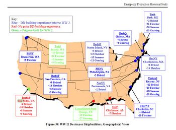 World War II Destroyer Shipbuilders map from Department of Defense (DoD)
