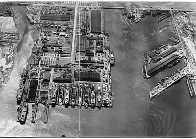 The "Plant A" destroyer facility produced a single civilian ship, the luxury ferry Chinook, launched in 1947,[12] but by 1952 oil terminals had been established in the spot.[13]