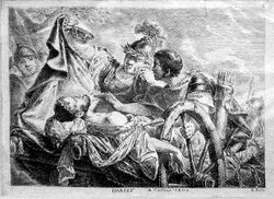 Aristotle in his Rhetoric argued that before a person can feel pity for another human, the person must first have experienced suffering of a similar type, and the person must also be somewhat distanced or removed from the sufferer.[8][9] He defines pity as follows: "Let pity, then, be a kind of pain in the case of an apparent destructive or painful harm of one not deserving to encounter it, which one might expect oneself, or one of one's own, to suffer, and this when it seems near".[9] Aristotle also pointed out that "people pity their acquaintances, provided that they are not exceedingly close in kinship; for concerning these they are disposed as they are concerning themselves", arguing further that in order to feel pity, a person must believe that the person who is suffering does not deserve their fate.[9] Developing a traditional Greek view in his work on poetry, Aristotle also defines tragedy as a kind of imitative poetry that provokes pity and fear.[10]