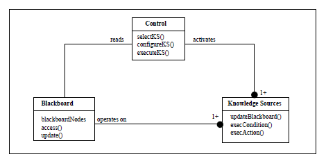 The blackboard pattern provides effective solutions for designing and implementing complex systems where heterogeneous modules have to be dynamically combined to solve a problem. This provides non-functional properties such as: