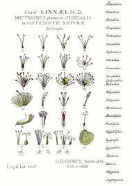 Classification systems serve the purpose of grouping organisms by characteristics common to each group. Plants are distinguished from animals by various traits: they have cell walls made of cellulose, polyploidy, and they exhibit sedentary growth. Where animals have to eat organic molecules, plants are able to change energy from light into organic energy by the process of photosynthesis. The basic unit of classification is species, a group able to breed amongst themselves and bearing mutual resemblance, a broader classification is the genus. Several genera make up a family, and several families an order.[1]
