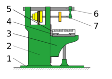 In 1936, Rudolph Bannow (1897–1962) conceived of a major improvement to the milling machine.[32] His company commenced manufacturing a new knee-and-column vertical mill in 1938. This was the Bridgeport milling machine, often called a ram-type or turret-type mill because its head has sliding-ram and rotating-turret mounting. The machine became so popular that many other manufacturers created copies and variants. Furthermore, its name came to connote any such variant. The Bridgeport offered enduring advantages over previous models. It was small enough, light enough, and affordable enough to be a practical acquisition for even the smallest machine shop businesses, yet it was also smartly designed, versatile, well-built, and rigid. Its various directions of sliding and pivoting movement allowed the head to approach the work from any angle. The Bridgeport's design became the dominant form for manual milling machines used by several generations of small- and medium-enterprise machinists. By the 1980s an estimated quarter-million Bridgeport milling machines had been built,[32] and they (and their clones) are still being produced today.