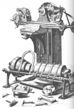 Some of the key men in milling machine development during this era included Frederick W. Howe, Francis A. Pratt, Elisha K. Root, and others. (These same men during the same era were also busy developing the state of the art in turret lathes. Howe's experience at Gay & Silver in the 1840s acquainted him with early versions of both machine tools. His machine tool designs were later built at Robbins & Lawrence, the Providence Tool Company, and Brown & Sharpe.) The most successful milling machine design to emerge during this era was the Lincoln miller, which rather than being a specific make and model of machine tool is truly a family of tools built by various companies on a common configuration over several decades. It took its name from the first company to put one on the market, George S. Lincoln & Company (formerly the Phoenix Iron Works), whose first one was built in 1855 for the Colt armory.[28]