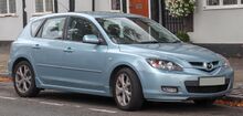 The BK series Mazda3 was launched in Japan in October 2003 as the Axela. The model was well received by the automotive press for its performance, handling, styling and interior, with some describing it as feeling like a more expensive sports sedan/saloon despite its value-oriented price.[9] Some criticisms have included fuel economy and crash test results (only receiving four out of a maximum five stars from the Euro NCAP Safety Testing Programme) the latter of which was rectified by making six airbags standard.[10][11] In 2006, the Mazda3 was the second best-selling car in Canada and the best selling car in Israel during 2005–2007.[12][13]