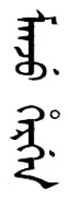 | ᡡ | ᡡ᠊ | ᠊ᡡ᠊ | ᠊ᡡ | ū/uu/v [ʊ] | Denotes u after k [qʰ], g [q], h [χ]. | |