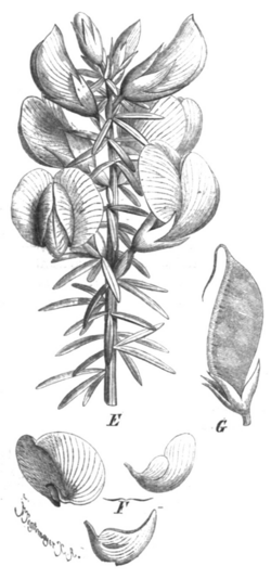 Cyclopia, the honeybush, or heuningbos in Afrikaans, is a genus of some 20 species of flowering plants in the legume family Fabaceae, subfamily Faboideae. Species of the genus are native to the southern and southwestern Cape Provinces of South Africa .[3]