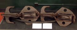 Grappling hooks are used by combat engineers to breach tactical obstacles. When used as such, the grappling hook is launched in front of an obstacle and dragged backwards to detonate tripwire-fused land mines, and can be hooked on wire obstacles and pulled to set off booby traps on the wire. The rifle-launched grapnel (LGH), a single-use grappling hook placed on the end of an M4/M16 rifle, is used for this purpose.[4][5] A crossbow-launched version has been produced.[6] A grapnel can clear up to 99% of the trip-wires in a single pass.[7] During WW2 British and German ships towed grappling hooks in the hope of snagging or damaging enemy submarines,[8] a tactic also employed by the Japanese.[9] Grappling hooks were used by soldiers at the D-Day landings to aid in climbing the cliffs at the Normandy beaches. Some were rocket-propelled and launched from mortars.[10][11]