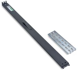 Rack slides are specifically intended for mounting equipment into 19-inch racks or 23-inch racks. These can be friction bearing, ball bearing, or roller bearing. They are sized to fit into racks with mounting flanges on the ends to mate to the mounting holes in racks. In some cases, one mounting flange is formed into the rack slide with an adapter bracket attached to the other end to accommodate different depths of the rack. The outer fixed member is attached to the rack and the inner moving member is generally screwed to the side of the mounted equipment. Rack slides are typically compound or 3-part slides allowing full extension of the mounted equipment and generally include provision for sliding the inner member completely free to allow removal of the equipment from the rack. They can also include stops to prevent accidentally pulling the equipment out of the rack without releasing the stop mechanism.