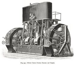 In January 1882 the world's first public coal-fired power station, the Edison Electric Light Station, was built in London, a project of Thomas Edison organized by Edward Johnson. A Babcock & Wilcox boiler powered a 93 kW (125 horsepower) steam engine that drove a 27-tonne (27-long-ton) generator. This supplied electricity to premises in the area that could be reached through the culverts of the viaduct without digging up the road, which was the monopoly of the gas companies. The customers included the City Temple and the Old Bailey. Another important customer was the Telegraph Office of the General Post Office, but this could not be reached through the culverts. Johnson arranged for the supply cable to be run overhead, via Holborn Tavern and Newgate.[3]