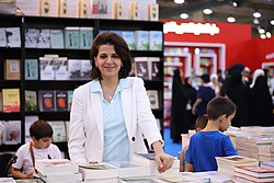 Bothayna Al-Essa, a Kuwaiti author with her books.
