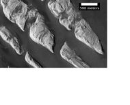 Much of Earth's land surface is just a few hundred million years old. In contrast, large areas of Mars are billions of years old. Some surface areas have been formed, eroded away, then covered over with new layers of rocks. Scientists believe that it used to have a dynamic surface, but then volcanic activity ceased and the atmosphere was stripped away. The Mariner 9 spacecraft in the 1970s photographed a feature that was called "White Rock." It was thought that this feature could have been a salt deposit, but information from the instruments on Mars Global Surveyor demonstrated rather that it was probably volcanic ash or dust. Today, it is believed that White Rock represents an old rock layer that once filled the whole crater that it's in, but today it has since been mostly been eroded away. The picture below shows white rock with a spot of the same rock some distance from the main deposit, so it is thought that the white material once covered a far larger area.[2]