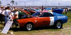 As an American-built two-seater, the AMC AMX was a high-performance car with few equals.[79] They were campaigned with factory support and by independents in a variety of road and track racing series as well as being classified as grand tourers.[80][81]