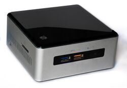| NUC5PGYH | NUC5PGYH | Pentium N3700 | 6 W | HD Graphics (16 EU) | 8 GB | HDMI 1.4, VGA | USB 3.0 (×4) | Gigabit Ethernet (×1), 802.11ac, Bluetooth 4.0 | Yes (×1) |