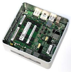 The standard barebone kits consist of the NUC board, in a plastic case with a fan, an external power supply, and a VESA mounting plate.[3] The plastic case is typically offered on one of two chassis, Tall (allowing for a 2.5" drive bay) or Slim (no 2.5" drive bay).[4] The NUC motherboard measures approximately 10 × 10 centimetres (4 × 4 in),[5] although some models have had different dimensions. Intel also sells bare NUC motherboards, which have a built-in CPU. However, (as of 2013[update]) the price of a NUC motherboard is very close to the corresponding cased kit; third-party cases for the NUC boards are also available.[6][7] In 2024, Intel’s NUC series continued to evolve through partnerships with ASUS under the “ASUS NUC” brand...