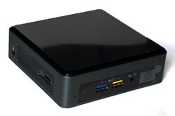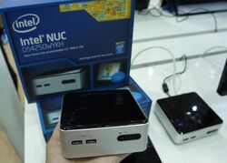 Next Unit of Computing (NUC) is a line of small-form-factor barebone computer kits designed by Intel. Previewed in 2012 and launched in early 2013,[1] the NUC line continues to develop over generations of Intel-based CPU launches, spanning from Sandy Bridge-based Celeron CPUs in the first generation, to Raptor Lake-based mobile and desktop CPUs in the thirteenth, and more recently Meteor Lake-based processors with AI capabilities.[2]