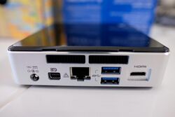 | NUC6CAYS | Celeron J3455 | 10 W | HD Graphics 500 (12 EU) | 8 GB | HDMI 2.0, VGA | USB 3.0 (×4) | Gigabit Ethernet (×1), 802.11ac, Bluetooth 4.0 | Yes (×1) |
