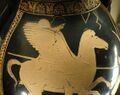 Bellerophon mounted on Pegasus fighting the Chimera, side A from an Attic red-figure pelike