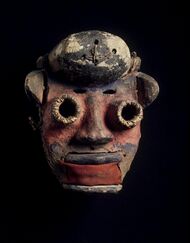 Highlights of the African collection include the Benin and Igbo-Ukwu bronze sculptures, the beautiful Bronze Head of Queen Idia, a magnificent brass head of a Yoruba ruler from Ife, the Apapa Hoard from Lagos, southern Nigeria, a dozen exquisite Afro-Portuguese ivories, Asante goldwork from Ghana, including the Bowdich collection, the rare Akan Drum from the same region in West Africa, a series of soapstone figures from the Kissi people in Sierra Leone and Liberia, the Torday collection of Central African sculpture, textiles and weaponry, important material from Ethiopia following the British Expedition to Abyssinia, the unique Luzira Head from Uganda, excavated objects from Great Zimbabwe and satellite towns such as Mutare including a large hoard of Iron Age soapstone figures, a rare divining bowl from the Venda peoples and cave paintings and petroglyphs from South Africa.
