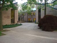 In 2004, the college completed construction of a modern visual arts facility, the Monika A. and Charles A. Heimbold Visual Arts Center, with sleek architecture and environmentally friendly aspects which earned the college national press attention. Just down the road is Hill House, a six-story apartment building purchased by the college in the late 1990s that now lodges students. Across the street from Hill House is the large Wrexham house, also in the Tudor style, which the college purchased from the government of Rwanda in 2004; this building, once home to the Rwandan consul, has been renovated and is used for various postgraduate programs. At the opposite end of the campus stands the Science and Mathematics Center, completed in 1994.