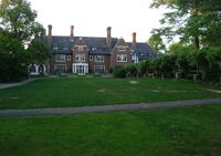 Sarah Lawrence College was established in 1926 by the real-estate mogul William Van Duzer Lawrence on the grounds of his estate in Westchester County and was named in honor of his wife, Sarah Bates Lawrence. The college was originally intended to provide instruction in the arts and humanities for women.[5] A major component of the college's early curriculum was "productive leisure", wherein students were required to work for eight hours weekly in such fields as modeling, shorthand, typewriting, applying makeup, and gardening.[6] Its pedagogy combined independent research projects which were individually supervised by the teaching faculty, and seminars with low student-to-faculty ratio, a pattern that it retains to the present. Sarah Lawrence was the first liberal arts college in the United States to incorporate a rigorous approach to the arts with the principles of progressive education, focusing on the primacy of teaching and the concentration of curricular efforts on individual needs.[6]
