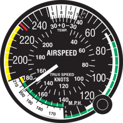 In aviation, airspeed is the speed of an aircraft relative to the air it is flying through (which itself is usually moving relative to the ground due to wind). It is difficult to measure the exact airspeed of the aircraft (true airspeed), but other measures of airspeed, such as indicated airspeed and Mach number give useful information about the capabilities and limitations of airplane performance. The common measures of airspeed are:[1]