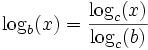 There are formulas for converting logarithms having different bases. To find a logarithm with base b using another base c, use the following identity: