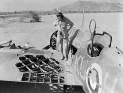 Following the Italian declaration of war on 10 June 1940, the remaining Wellesley squadrons participated in the East African Campaign against Italian forces in Eritrea, Ethiopia and Somaliland. Although obsolete, the Wellesley formed a major part of the British Commonwealth bomber forces, mainly carrying out raids targeting Eritrea and northern Ethiopia.[24] Sudan-based Wellesleys carried out their first bombing mission on 11 June 1940, against Asmara in Eritrea. Three days later, they were involved in their first air combat, when Capitano Mario Visintini, future top-scoring biplane ace of the Second World War, intercepted a pair of Wellesleys from 14 Squadron on their way to bomb Massawa. Visintini, who was flying a Fiat CR.42 Falco, shot down the aircraft K7743, flown by Pilot Officer Reginald Patrick Blenner Plunkett. It was the first of Visintini's 16 air victories in Eastern Africa.[25][26]