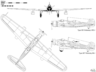 | Type 292 of the Long-Range Development unit. Unlike production Wellesleys, the engine cowling is blended with the fuselage profile. | |
