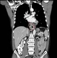 Contrast CT scan showing an esophageal tumor (coronal view)