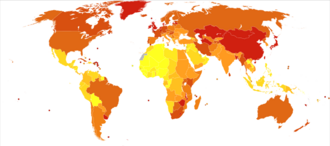 The worldwide incidence rate of ESCC in 2012 was 5.2 new cases per 100,000 person-years, with a male predominance (7.7 per 100,000 in men vs. 2.8 in women).[72] It was the common type in 90% of the countries studied.[72] ESCC is particularly frequent in the so-called "Asian esophageal cancer belt", an area that passes through northern China, southern Russia , north-eastern Iran, northern Afghanistan and eastern Turkey.[70] In 2012, about 80% of ESCC cases worldwide occurred in central and south-eastern Asia, and over half (53%) of all cases were in China.[72] The countries with the highest estimated national incidence rates were (in Asia) Mongolia and Turkmenistan and (in Africa) Malawi, Kenya and Uganda.[72] The problem of esophageal cancer has long been recognized in the eastern and southern parts of Sub-Saharan Africa, where ESCC appears to predominate.[73]