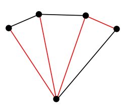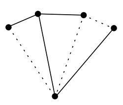Conversely, topology is concerned only with the geometric relationship between the elements of a network, not with the kind of elements themselves. The heart of a topological representation of a network is the graph of the network. Elements are represented as the edges of the graph. An edge is drawn as a line, terminating on dots or small circles from which other edges (elements) may emanate. In circuit analysis, the edges of the graph are called branches. The dots are called the vertices of the graph and represent the nodes of the network. Node and vertex are terms that can be used interchangeably when discussing graphs of networks. Figure 2.2 shows a graph representation of the circuit in figure 2.1.[21]