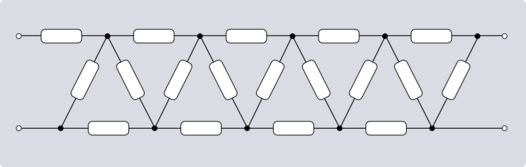 Perhaps, the earliest network with an infinite graph to be studied was the ladder network used to represent transmission lines developed, in its final form, by Oliver Heaviside in 1881. Certainly all early studies of infinite networks were limited to periodic structures such as ladders or grids with the same elements repeated over and over. It was not until the late 20th century that tools for analysing infinite networks with an arbitrary topology became available.[52]