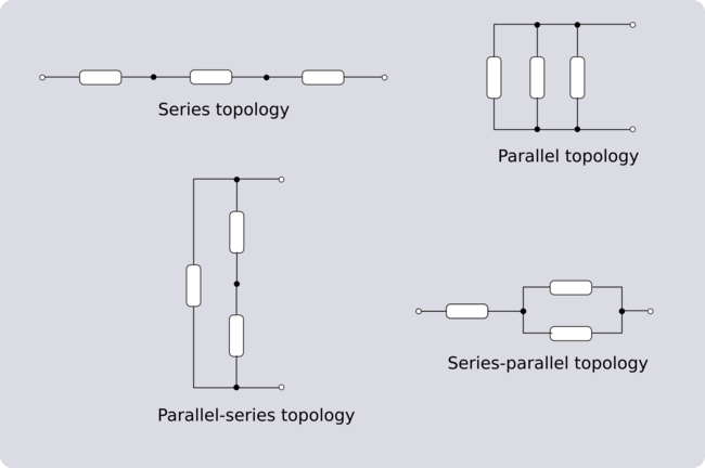 Series and parallel topologies can continue to be constructed with greater and greater numbers of branches ad infinitum. The number of unique topologies that can be obtained from n branches is 2n-1. The total number of unique topologies that can be obtained with no more than n branches is 2n-1.[3]
