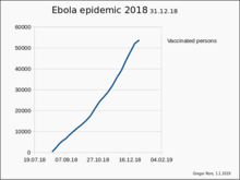 The DRC Ministry of Public Health reported on 16 August 2018 that 316 individuals had been vaccinated.[316] On 24 August, the DRC indicated it had vaccinated 2,957 individuals, including 1,422 in Mabalako against the Ebola virus.[317] By late October, more than 20,000 individuals had been vaccinated.[318] In December, Dr. Peter Salama, who is Deputy Director-General of Emergency Preparedness and Response for WHO, reported that the current 300,000 vaccine stockpile might not be enough to contain the EVD outbreak, especially since it takes several months to make more of the Zaire EVD vaccine (rVSV-ZEBOV).[319][320] On 11 December, it was reported that Beni only had 4,290 doses of vaccine in stock.[169]