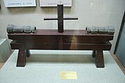 Replica of Ming dynasty cannons mounted on the opposite direction of a wooden frame, 1372.