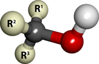 In chemistry, alcohol is an organic compound that carries at least one hydroxyl functional group (−OH) bound to a saturated carbon atom.[2] The term alcohol originally referred to the primary alcohol ethanol (ethyl alcohol), which is used as a drug and is the main alcohol present in alcoholic drinks. An important class of alcohols, of which methanol and ethanol are the simplest members, includes all compounds for which the general formula is CnH2n+1OH. Simple monoalcohols that are the subject of this article include primary (RCH2OH), secondary (R2CHOH) and tertiary (R3COH) alcohols.