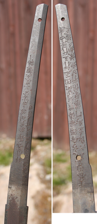 A tang or shank is the back portion of the blade component of a tool where it extends into stock material or connects to a handle – as on a knife, sword, spear, arrowhead, chisel, file, coulter, pike, scythe, screwdriver, etc.[1][2] One can classify various tang designs by their appearance, by the manner in which they attach to a handle, and by their length in relation to the handle.