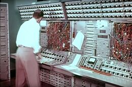 The FERMIAC was an analog computer invented by physicist Enrico Fermi in 1947 to aid in his studies of neutron transport.[22] Project Cyclone was an analog computer developed by Reeves in 1950 for the analysis and design of dynamic systems.[23] Project Typhoon was an analog computer developed by RCA in 1952. It consisted of over 4,000 electron tubes and used 100 dials and 6,000 plug-in connectors to program.[24] The MONIAC Computer was a hydraulic analogy of a national economy first unveiled in 1949.[25]