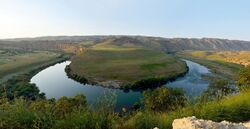 The Tigris is 1,750 km (1,090 mi) long, rising in the Taurus Mountains of eastern Turkey about 25 km (16 mi) southeast of the city of Elazığ and about 30 km (19 mi) from the headwaters of the Euphrates. The river then flows for 400 km (250 mi) through Southeastern Turkey before forming part of the Syria-Turkey border. This stretch of 44 km (27 mi) is the only part of the river that is located in Syria.[2] Some of its affluences are Garzan, Anbarçayi, Batman, and the Great and the Little Zab.[7]