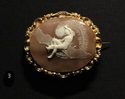 Black onyx was also commonly used to make mourning jewellery. Black onyx otherwise known as black-dyed chalcedony, was a material mostly used in constructing cameos and was used in beadwork.[3][9]