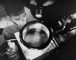 A measuring instrument for radio waves: the 64-meter radio telescope at Parkes Observatory, Australia , as seen in 1969, when it was used to receive live televised video from Apollo 11