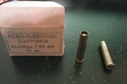 7.62×38mmR (also known as 7.62 mm Nagant and Cartridge, Type R) is an ammunition cartridge designed for use in the Russian Nagant M1895 revolver.