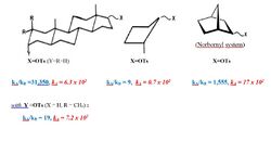 Substitution reactions of secondary esters occur by SN2- or SN1-like mechanisms.[4] [5][6] Only in highly polar solvents such as hexafluoroisopropanol (HFIP) of low nucleophilicity one can expect a nearly same uniform SN1-like mechanism. The solvolysis of several cyclopentyl and steroidal esters show that large solvolysis rates and differences between epimers can occur which surpass those of the 2-norbornyl system. In these cases a vicinal C–C or C–H bond can lead to significant delocalization of the positive charge, if these bonds are close to antiperiplanar to the leaving group, and the migration leads to a more stable tertiary carbocation.