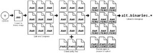 In an attempt to reduce file transfer times, an informal file encoding known as yEnc was introduced in 2001. It achieves about a 30% reduction in data transferred by assuming that most 8-bit characters can safely be transferred across the network without first encoding into the 7-bit ASCII space. The most common method of uploading large binary posts to Usenet is to convert the files into RAR archives and create Parchive files for them. Parity files are used to recreate missing data when not every part of the files reaches a server.