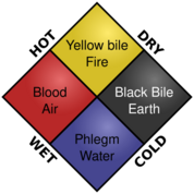 Disabilities were thought to have been caused by a divine punishment.[108] Demons and evil spirits were considered to be an explanation for some mental illnesses.[109] It was also believed that mental illnesses could be developed due to natural or biological causes. The dominant theory in ancient Rome was humorism, which is the idea that each person had a group of four humors. If they were balanced then the individual would develop illnesses, including mental ones. The pulse and heartbeat of the affected person were also used to diagnose.[47] Galen believed that negative emotions imbalanced the mind, causing disease. He believed that these emotions caused blood to retreat to "the depths of the body." Resulting in many negative symptoms and diseases such as melancholia and depression.[31] It was believed that seasons could affect the illnesses. Changes in weather were thought to stir up the humors.[110]