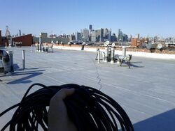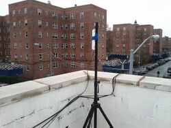 First Red Hook WiFi mesh network node (Ubiquiti Nanostation) installation on the Red Hook Initiative rooftop