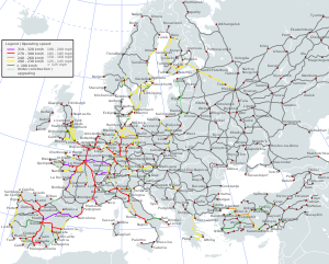 Map of high-speed railways in Europe.