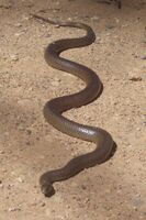 The brown snakes, death adders, mulga snakes, taipans, and tiger snakes are the five groups that inflict virtually all reported snakebites, although copperheads, rough-scaled snakes, and members of the genus Hoplocephalus are also occasionally involved in bites. Of the five dangerous groups, the highly venomous eastern brown snake, which is widespread and common in both rural and urban environments, is the most important—it is estimated to be responsible for up to 60% of all deaths caused by snakebite.[39]